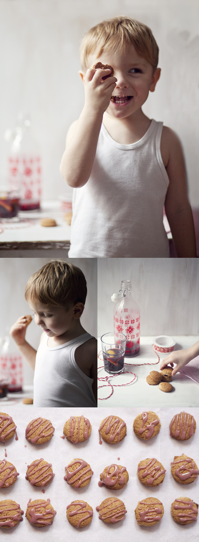 5. A porcukor felével forraljuk hosszasan a forralt bort, sűrítsük be egészen (tutira el akartam az alkoholt főzni belőle), majd keverjük össze a többi porcukorral, hogy sűrű cukormázat kapjunk. Ezt töltsük habzsákba és díszítsük vele a puszedliket.